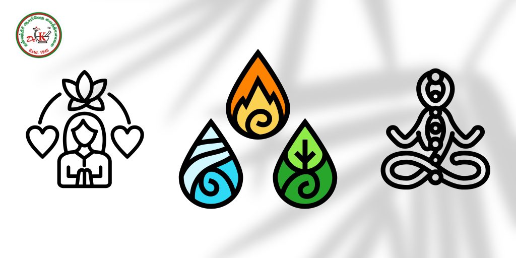 These elements combine to form three vital energies, known as Doshas, which govern all bodily and mental functions: